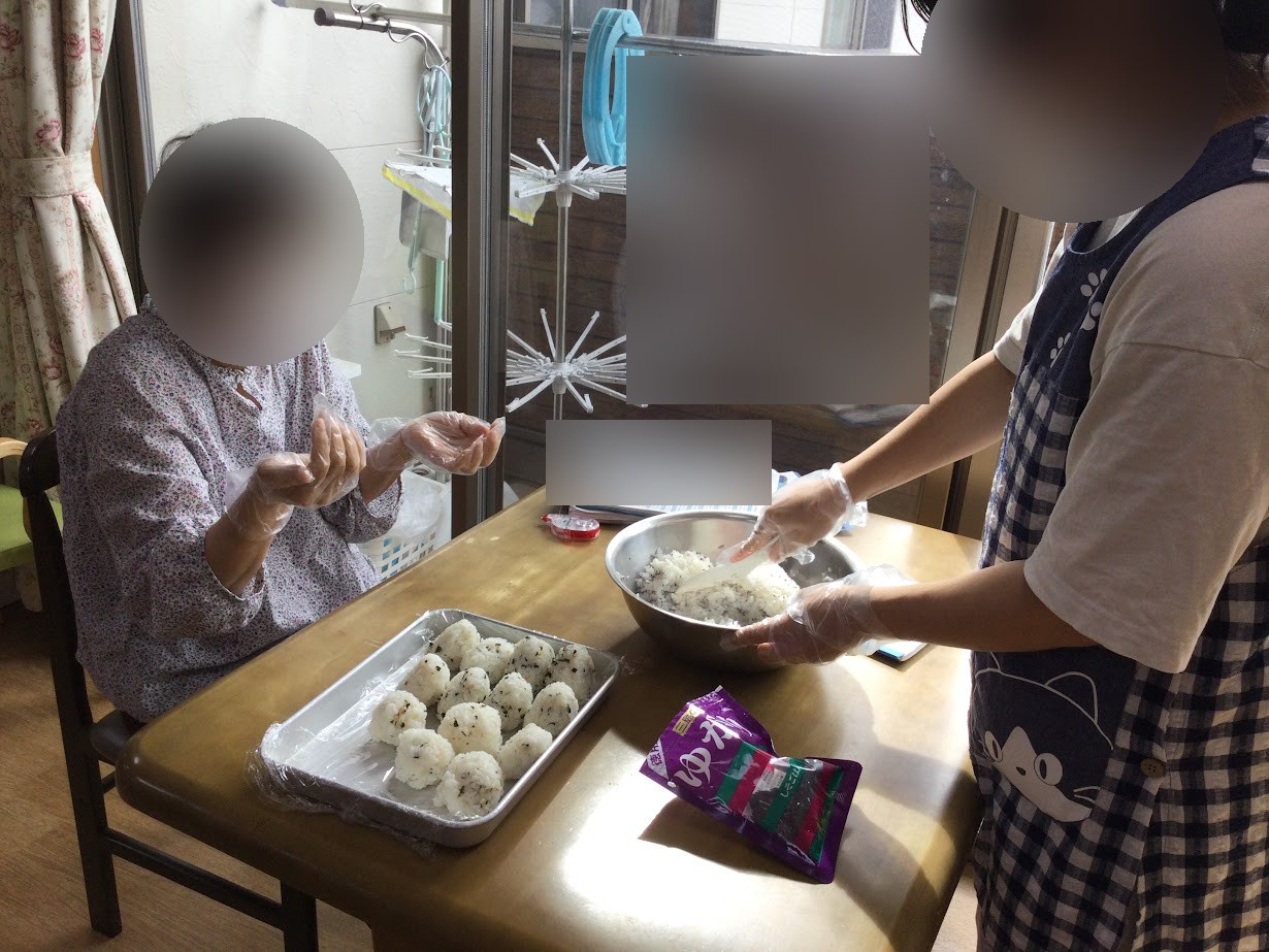 2階の利用者様にはおにぎりを作るのを手伝っていただきました