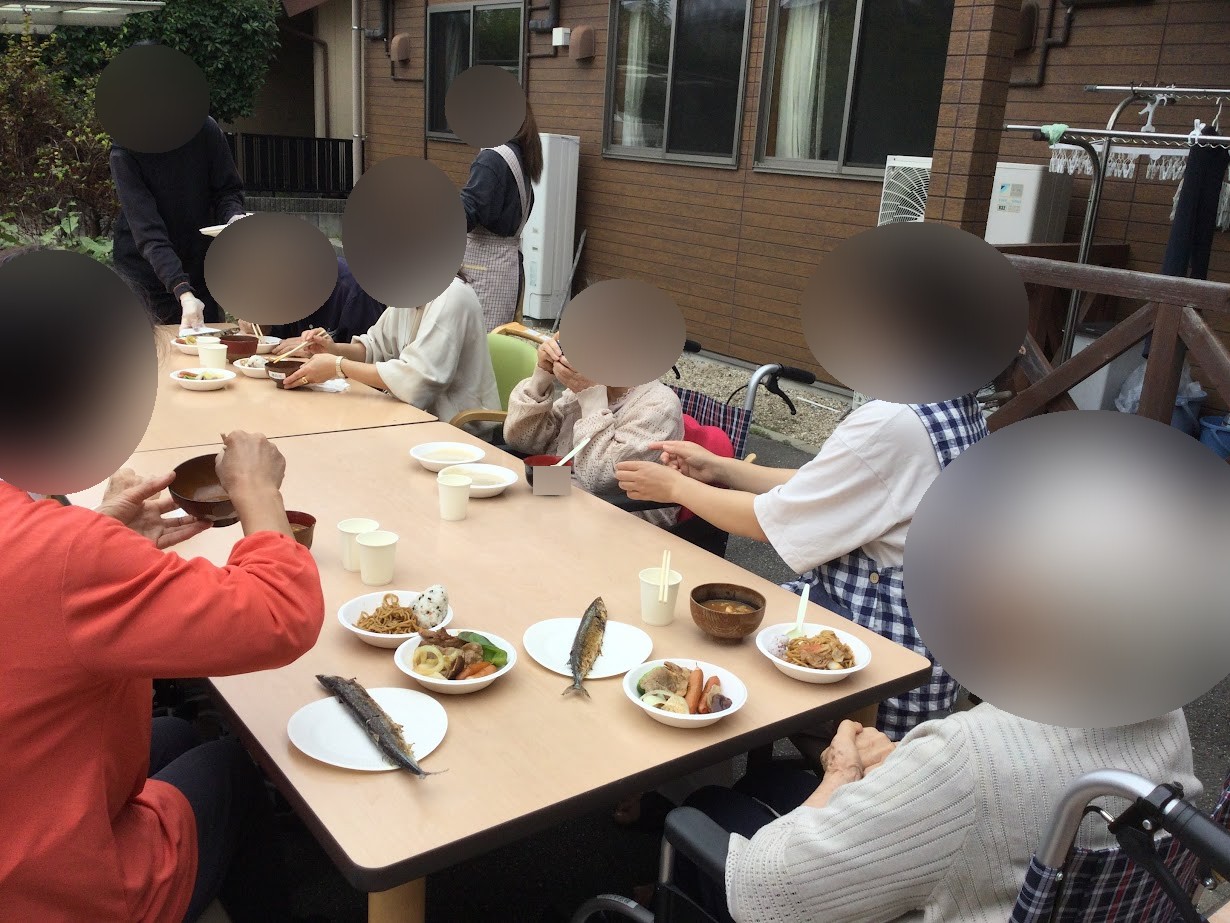 皆さん、秋刀魚やお肉・豚汁などたくさん召し上がっておられ