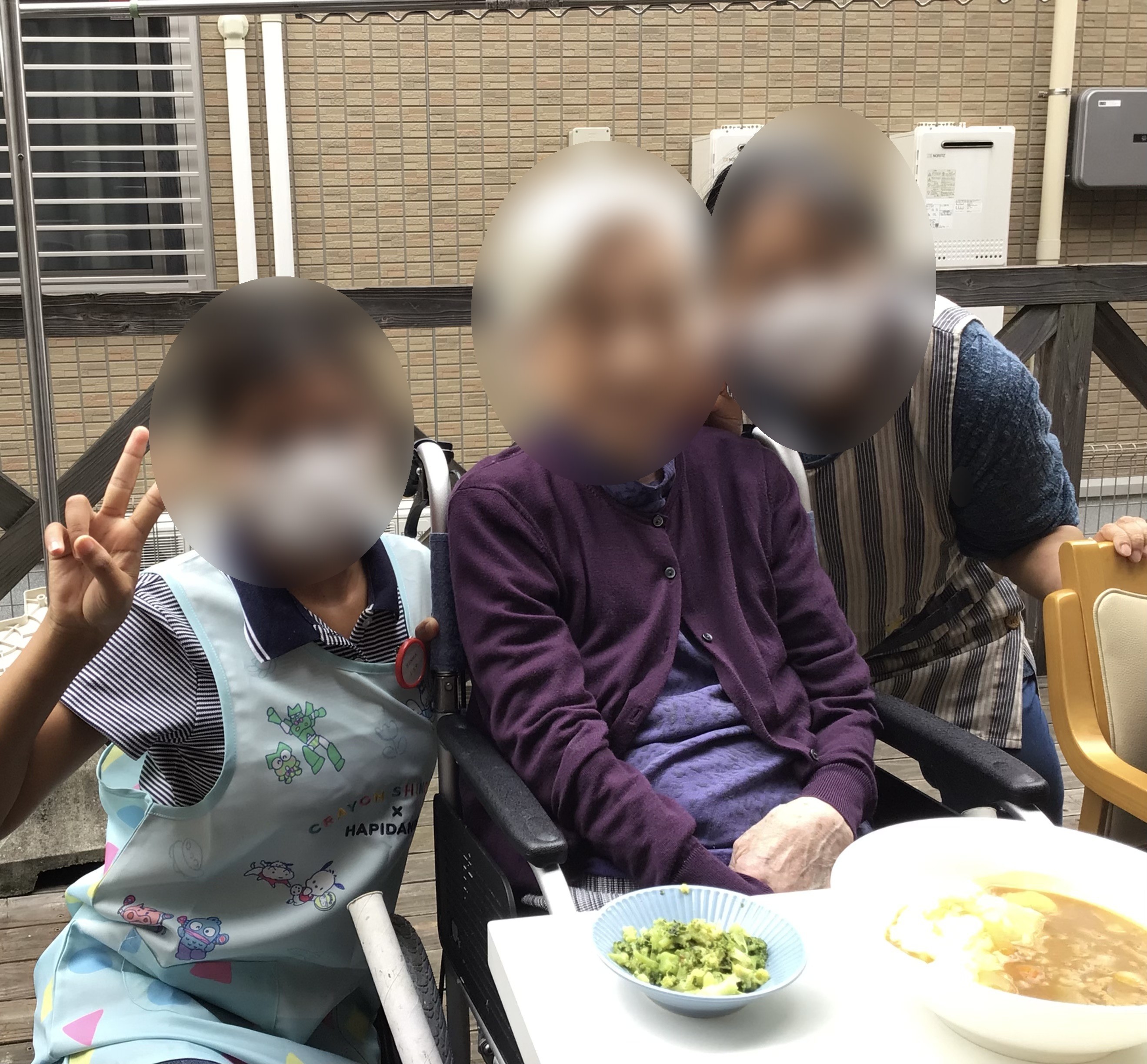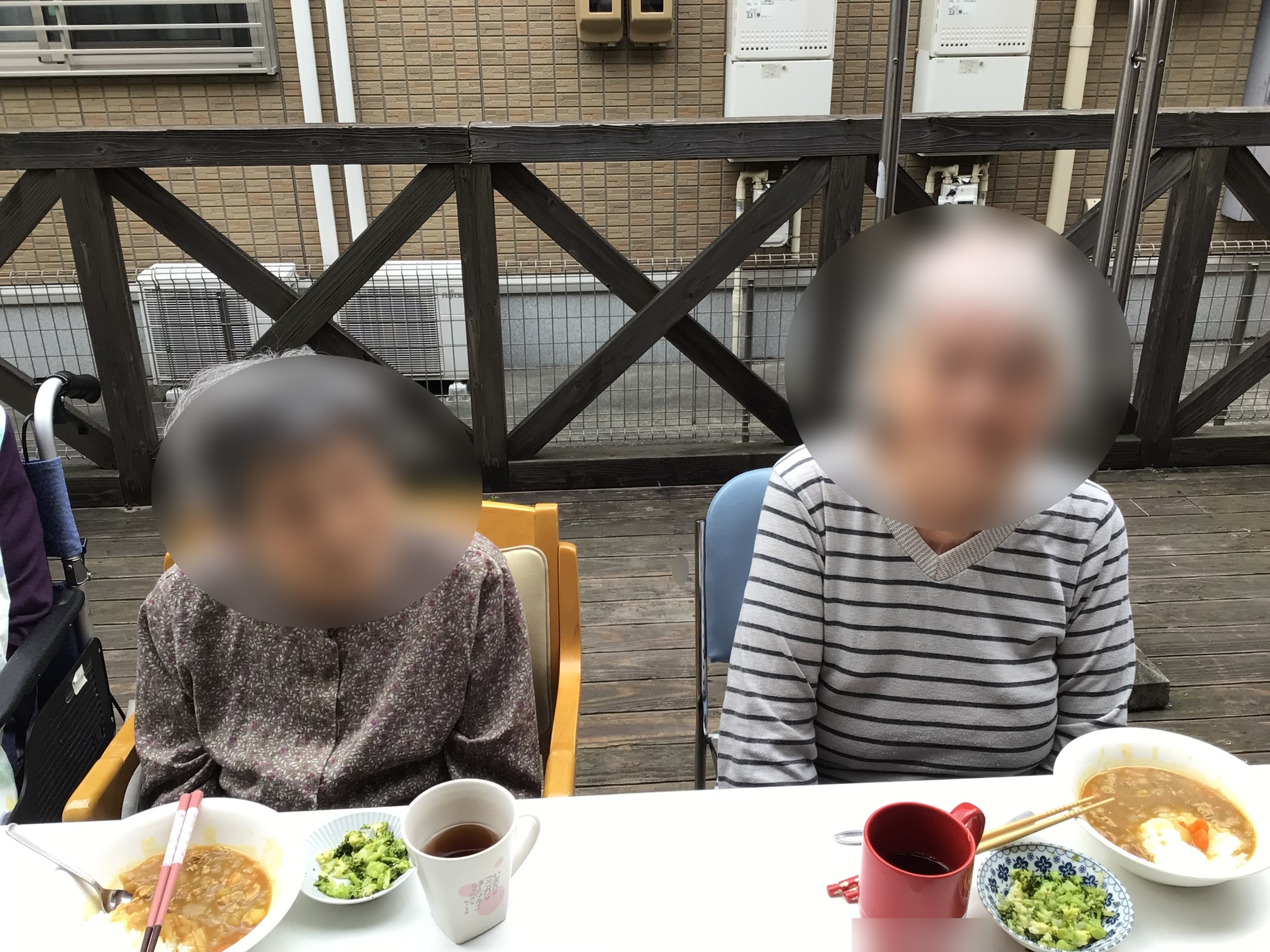 1階2階合同でウッドデッキにて昼食のカレーライスを