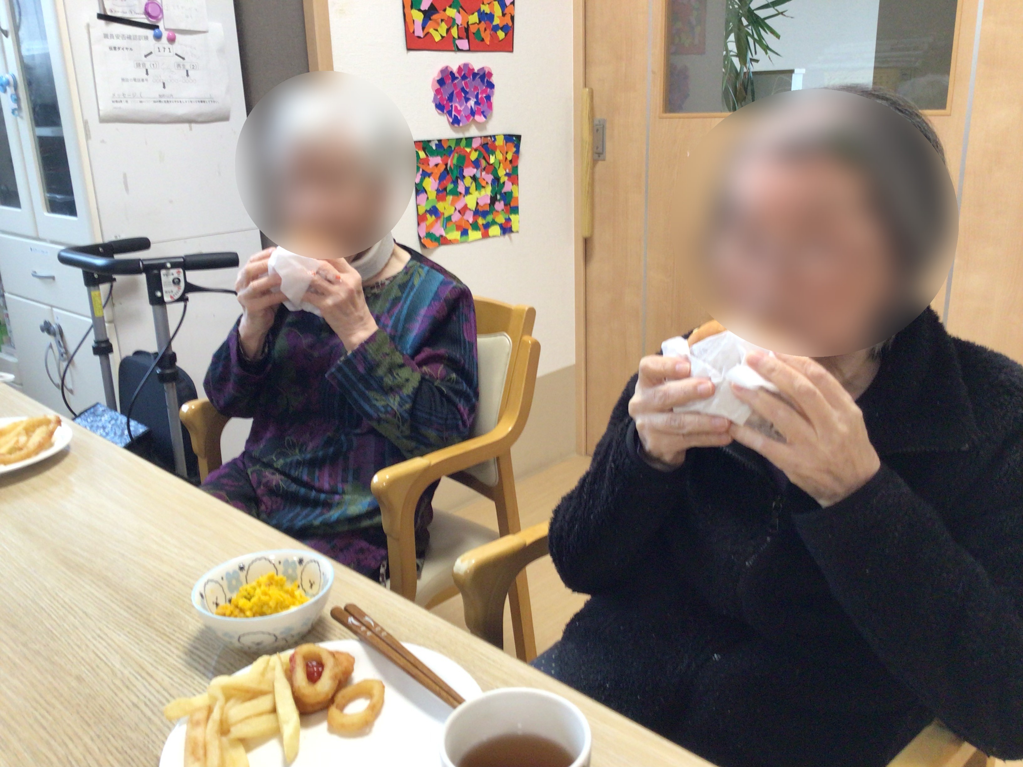本日のお昼ご飯は皆さまのリクエストメニューでチーズバーガーです