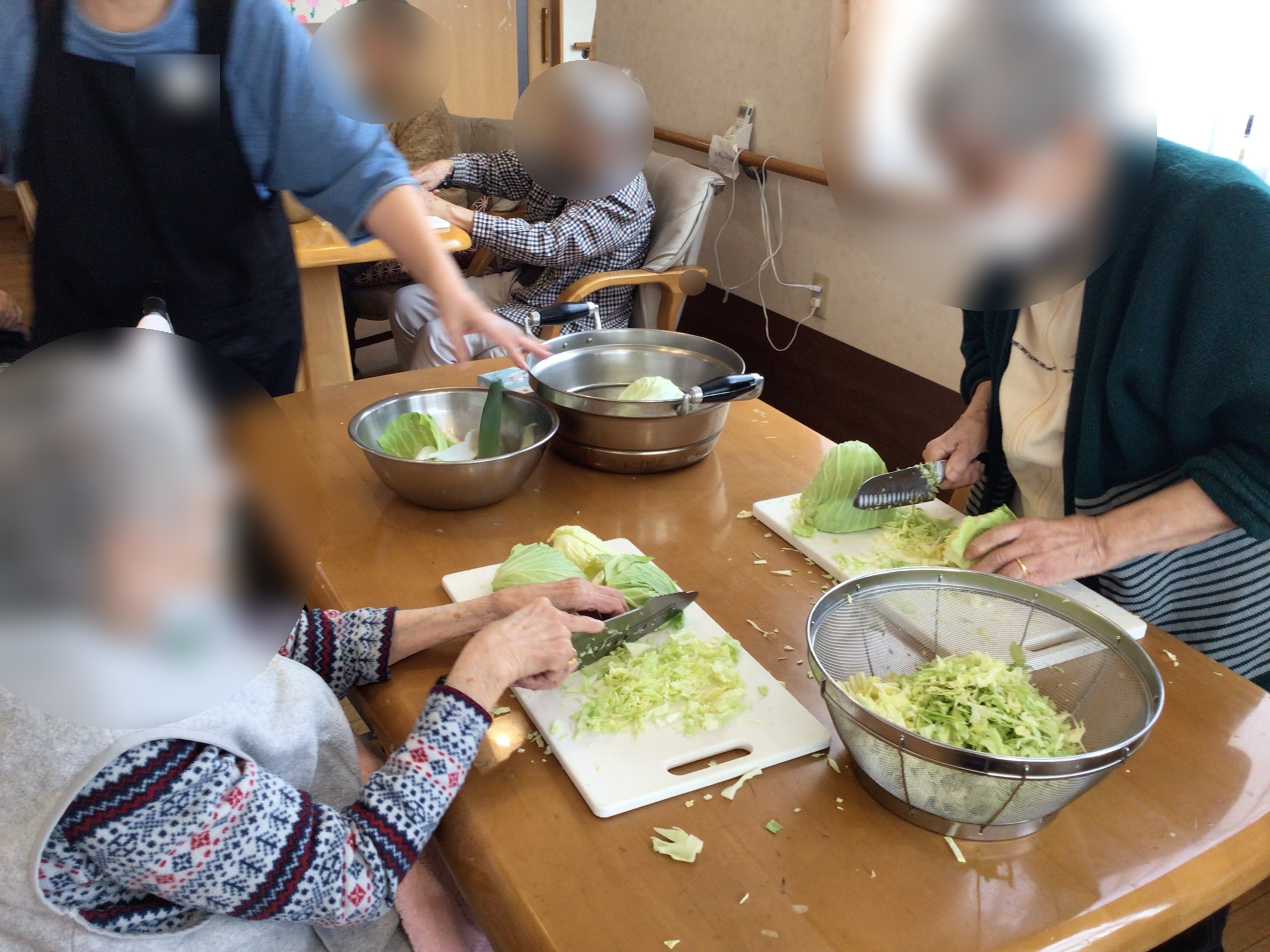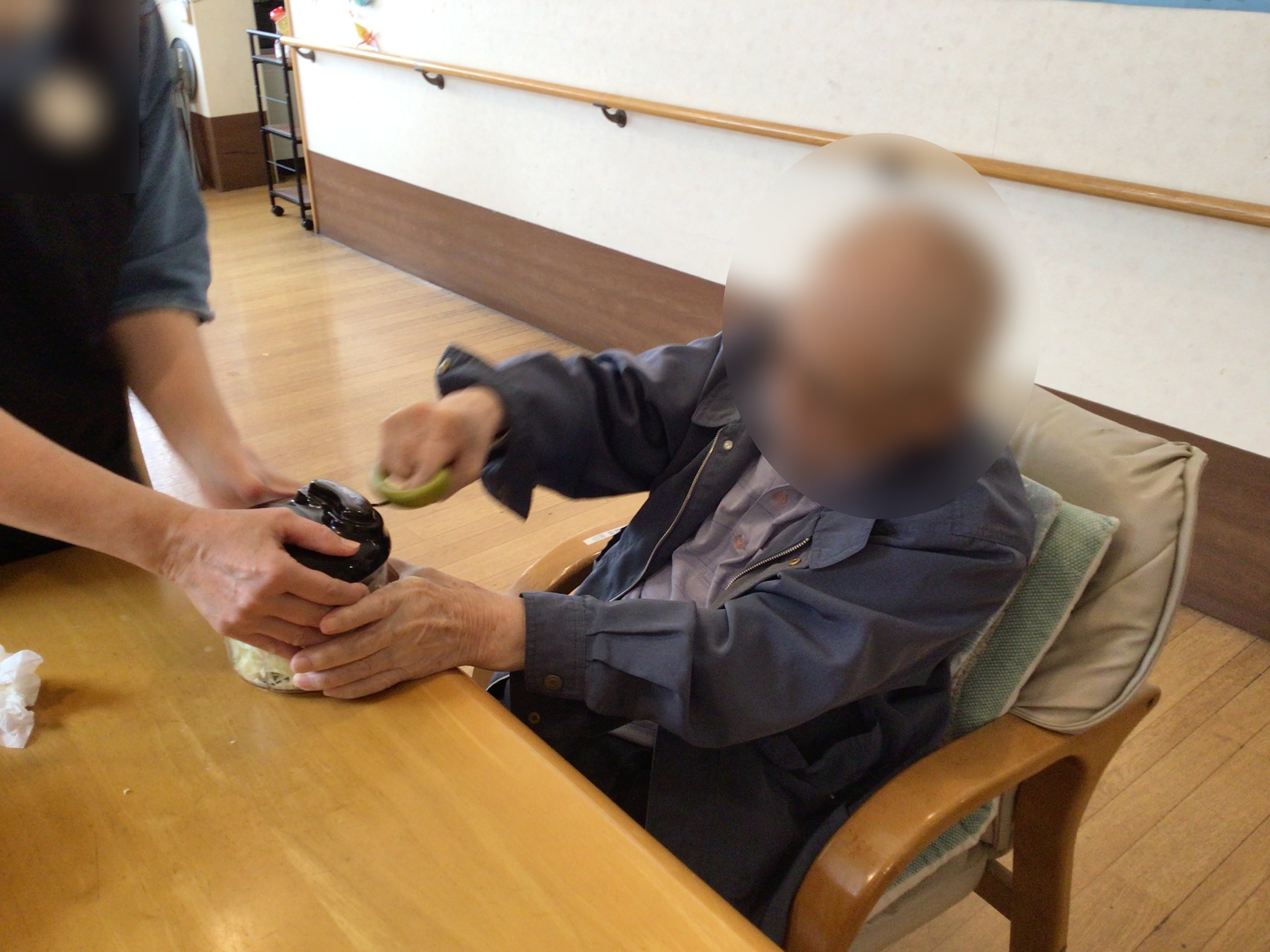 男性のご利用者様にはチョッパーでみじん切りのお手伝いをして頂きました