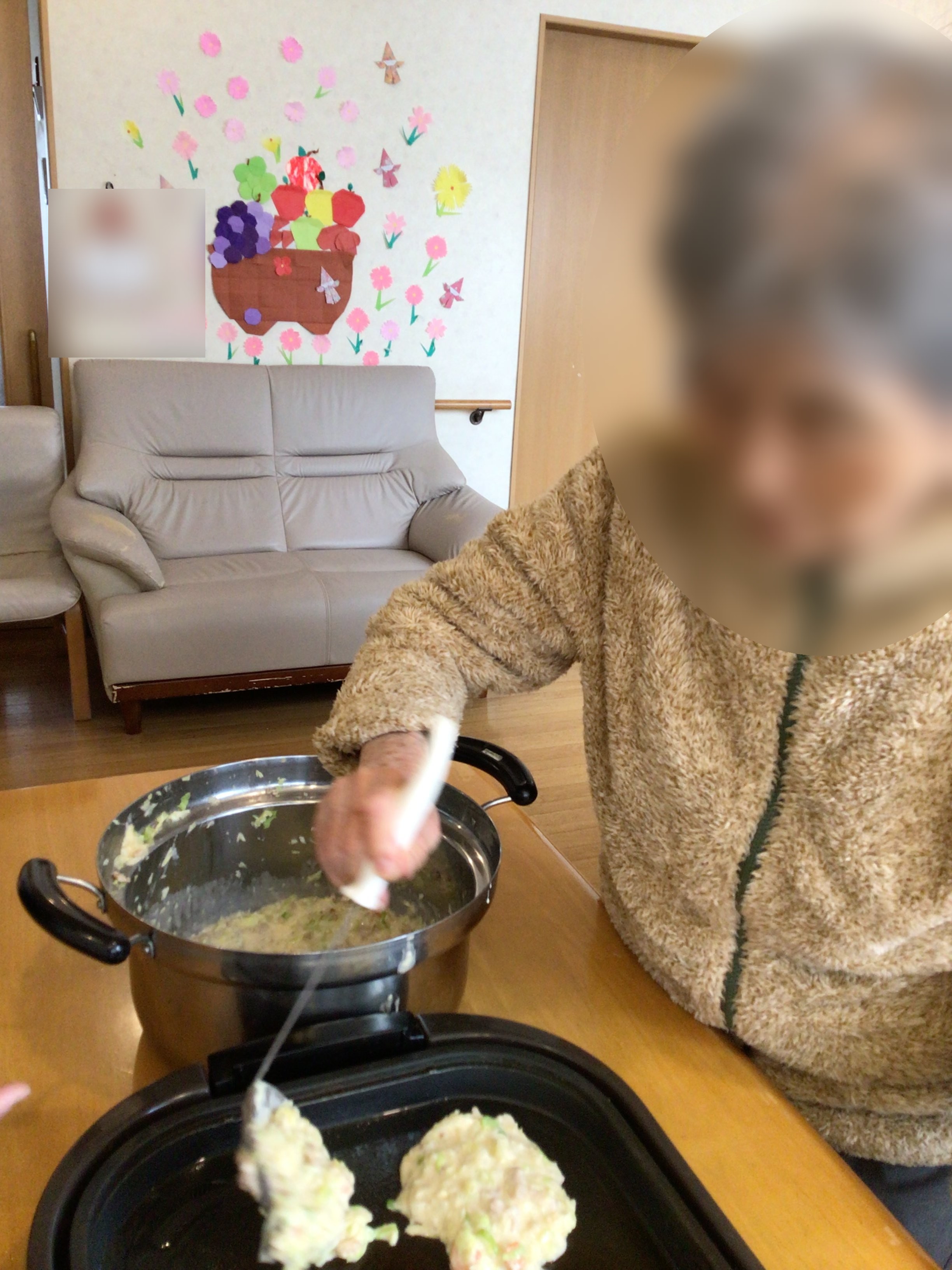 この日は2階でお好み焼きを作りました。1階の分も一緒に作ります