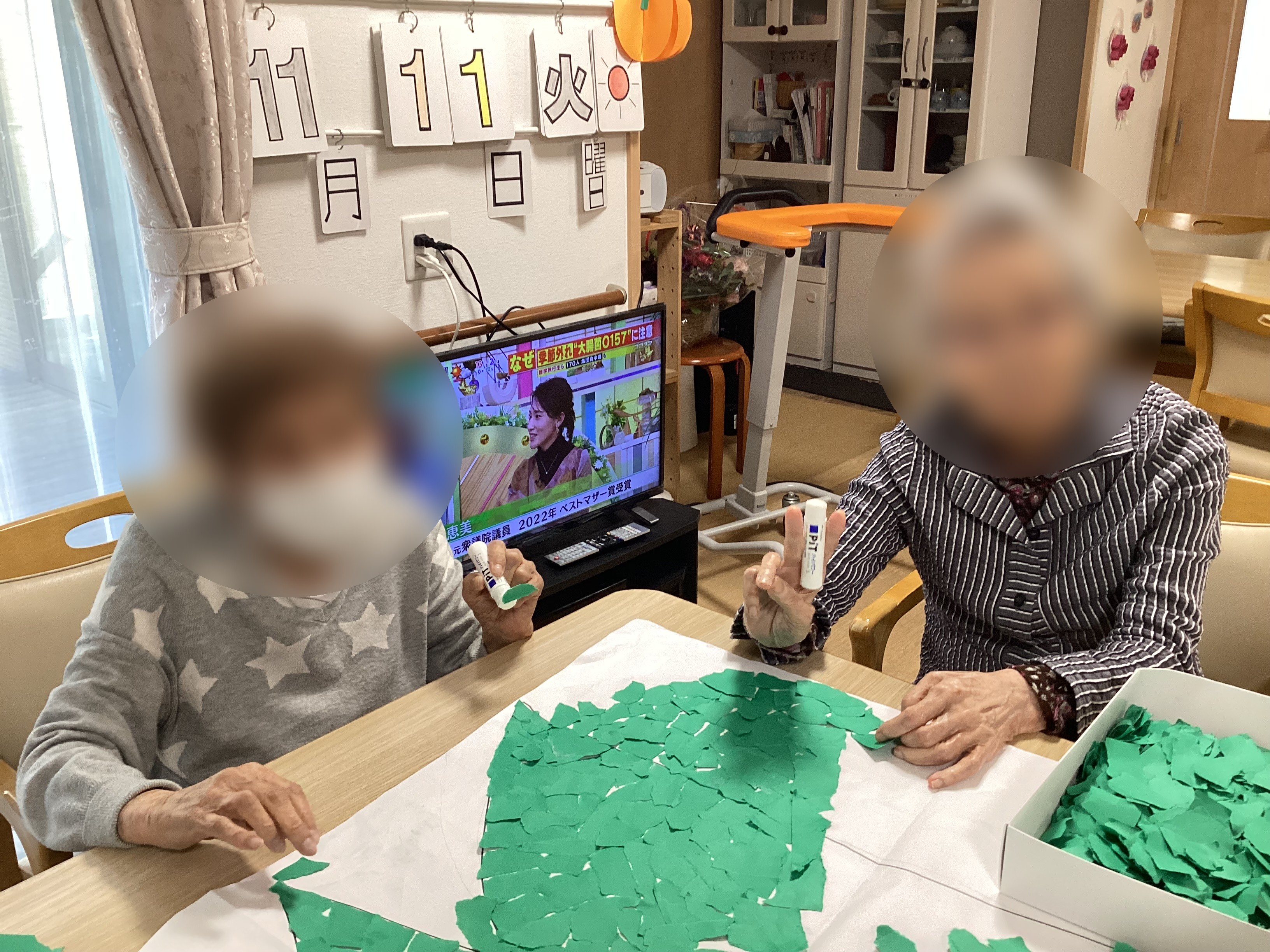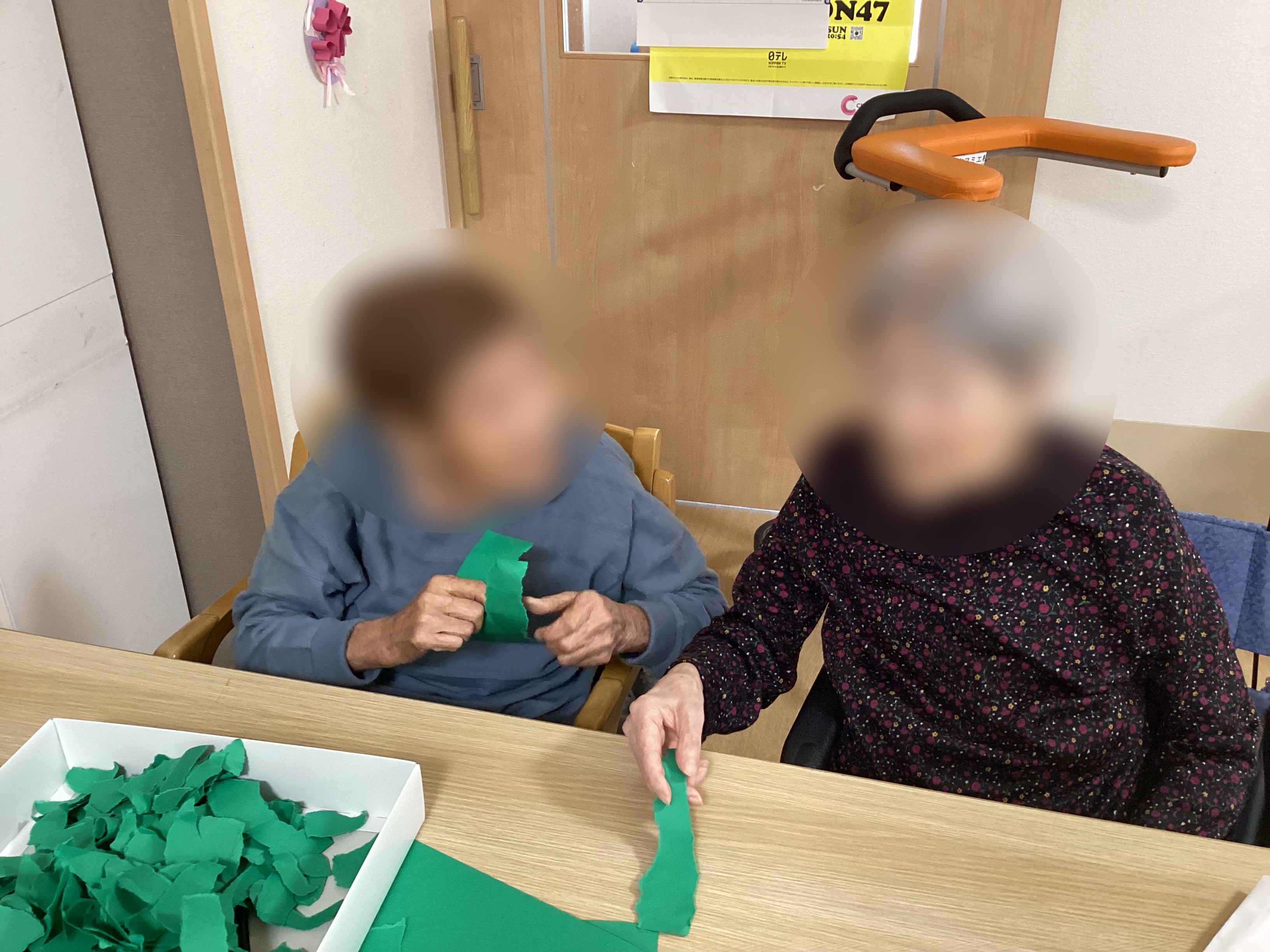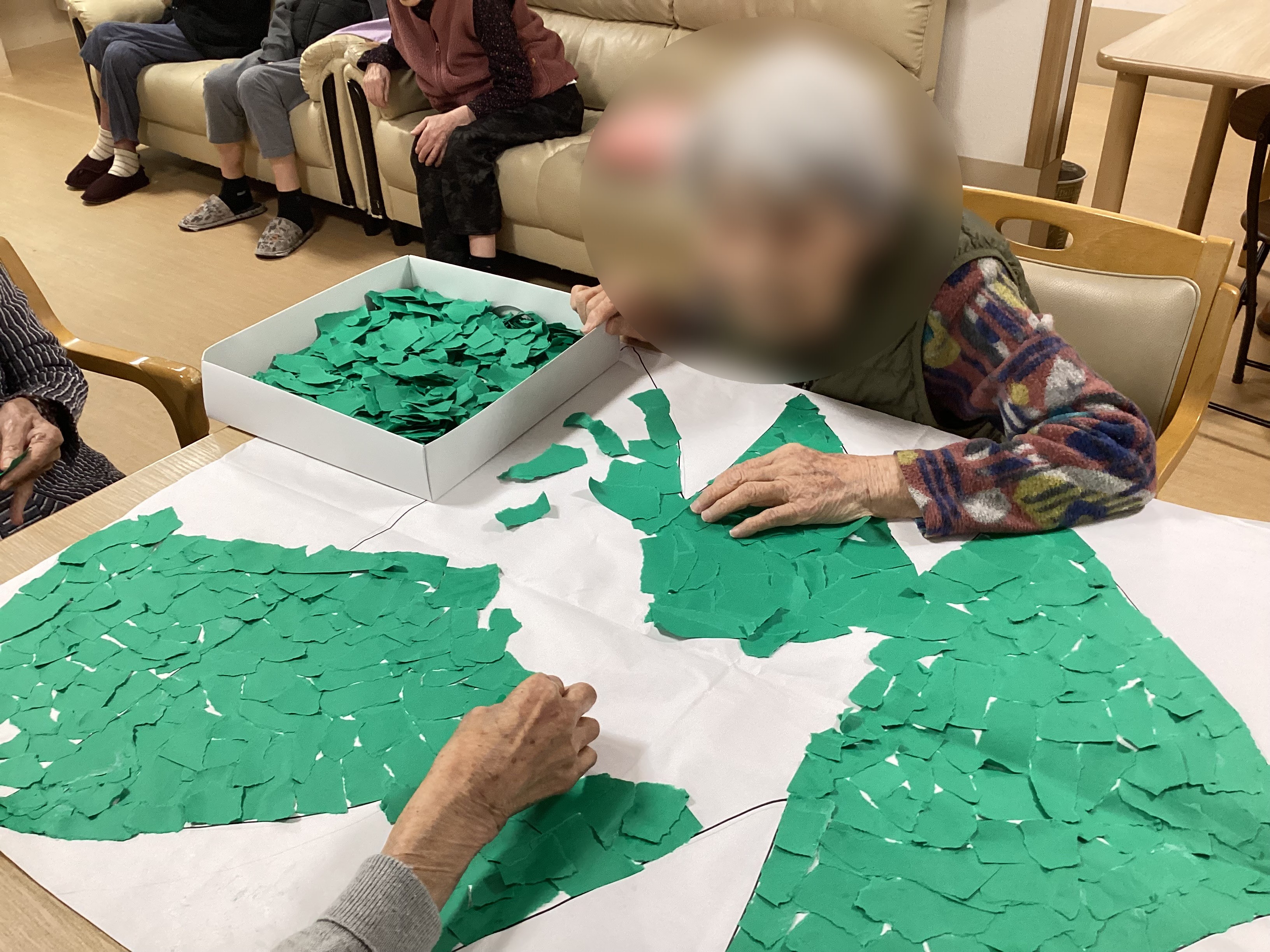 ちぎり絵で大きなクリスマスツリーを制作中ですheart04