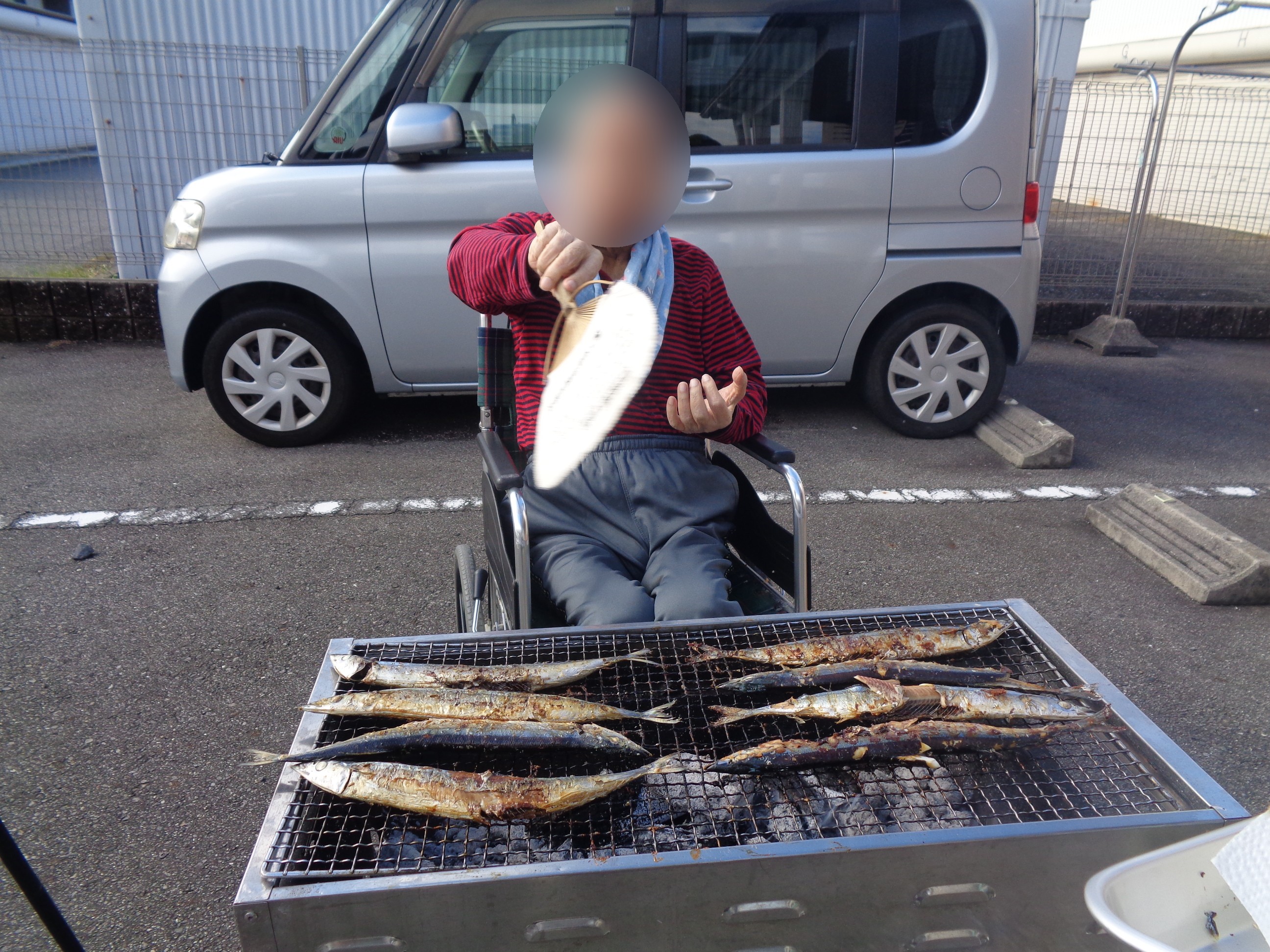 屋外では秋刀魚と5月の田楽大会で好評だった焼き鳥を焼いて頂きました