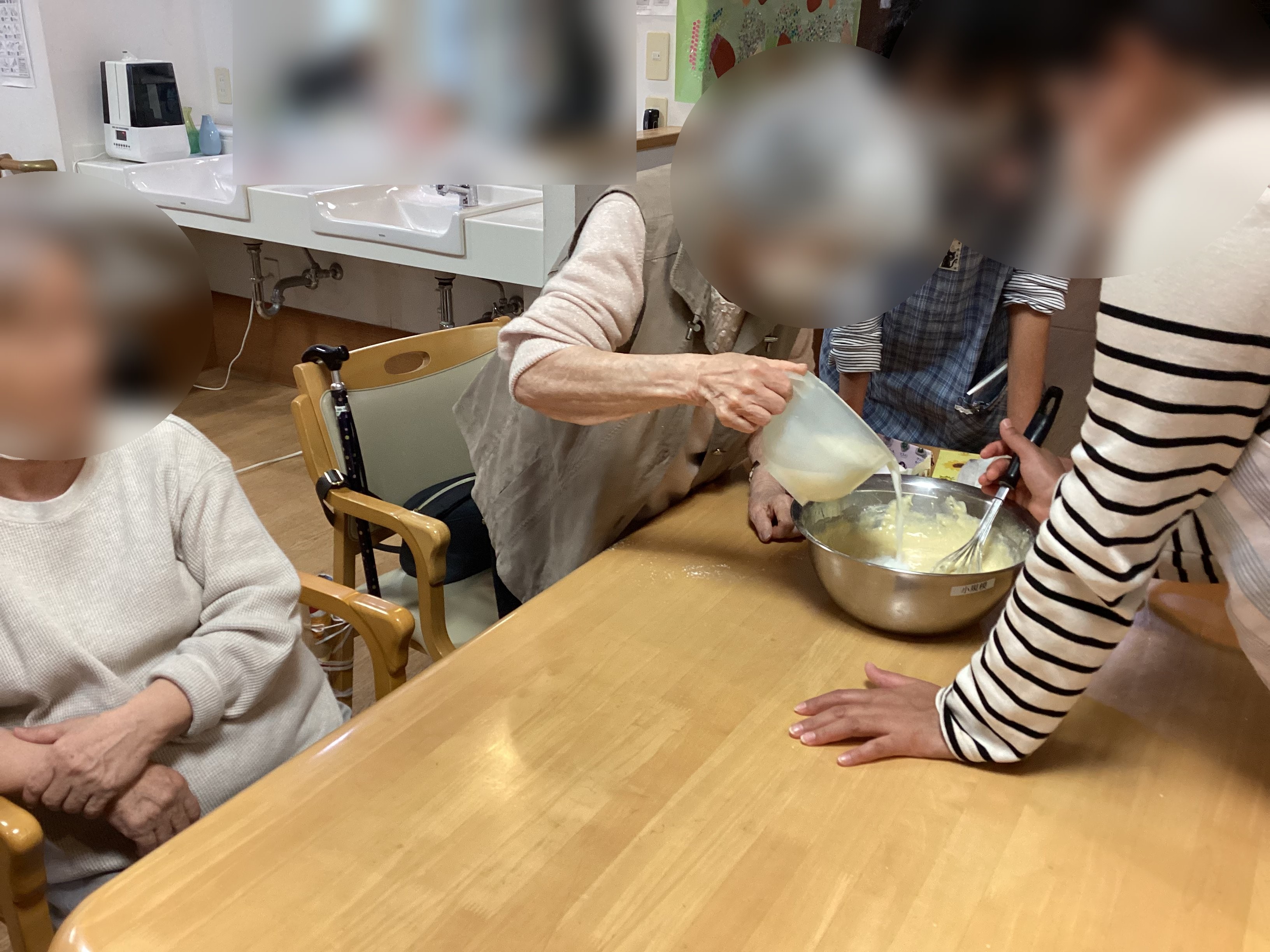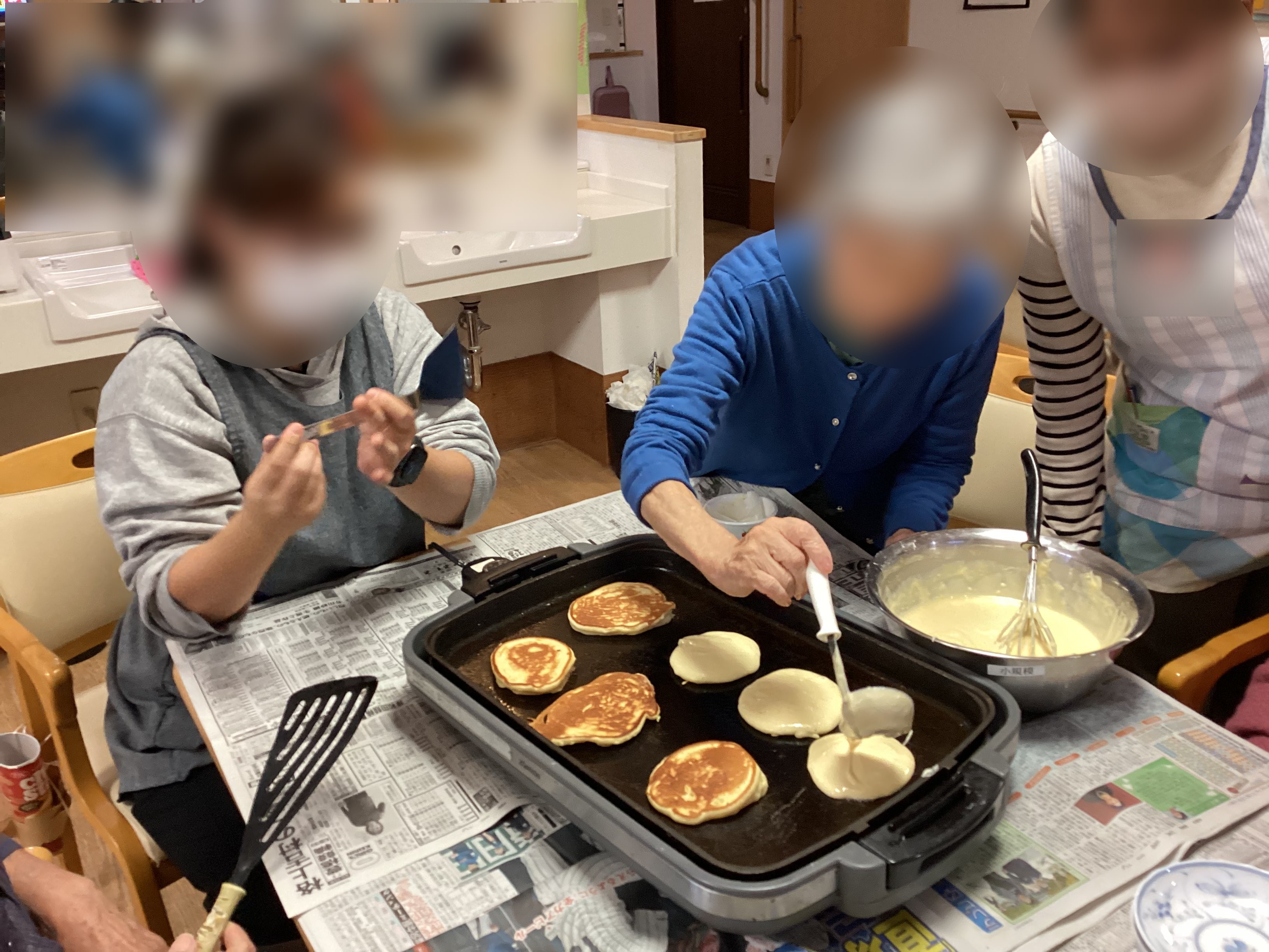 午後のレクリエーションにてホットケーキを作りました