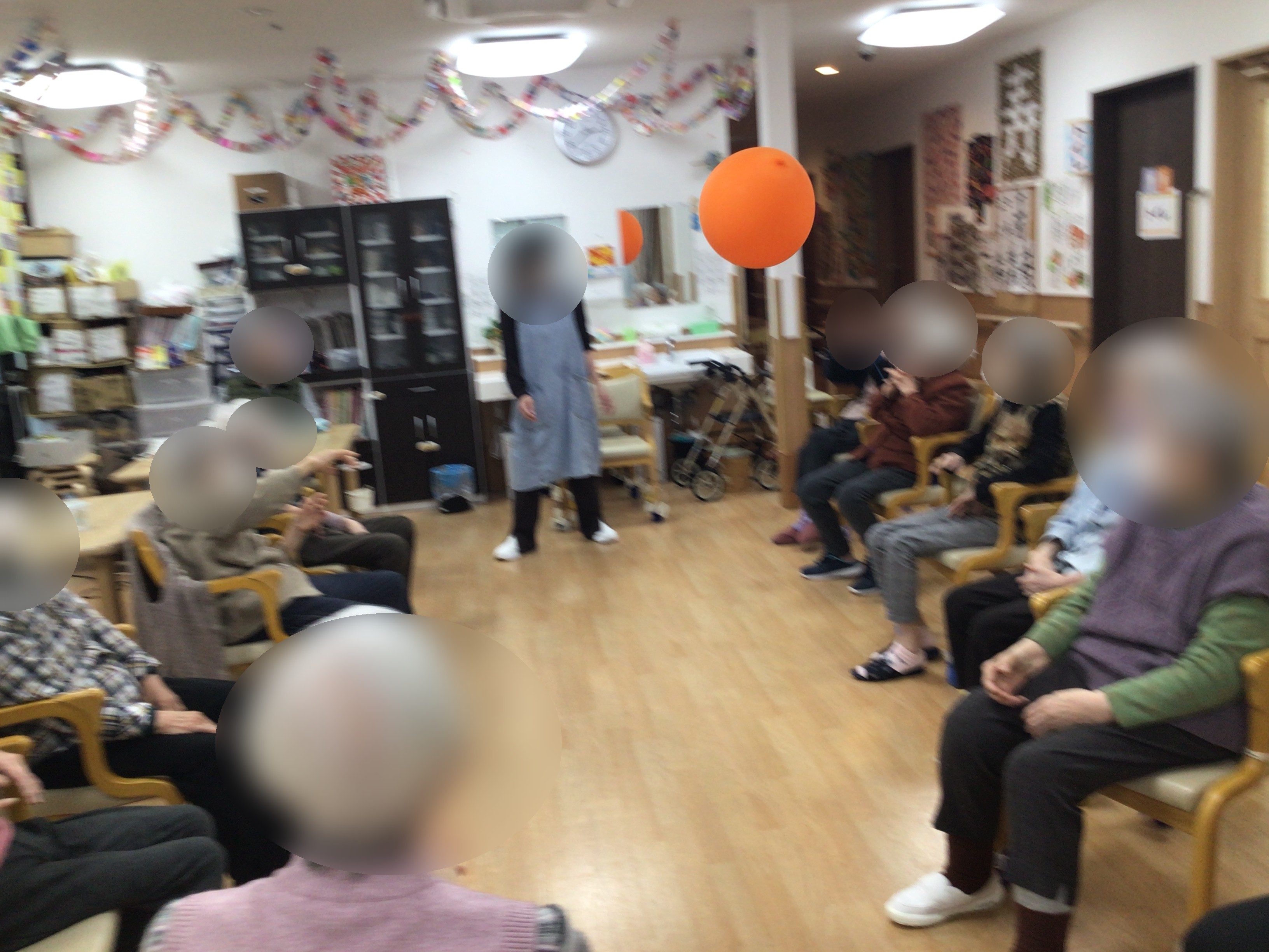 お昼からのレクは風船バレーを行いました