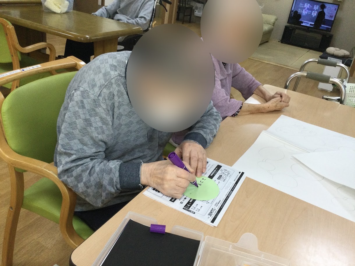 お題を書く折り紙を丸く切っていただき、そこにお題を書いていただいたり