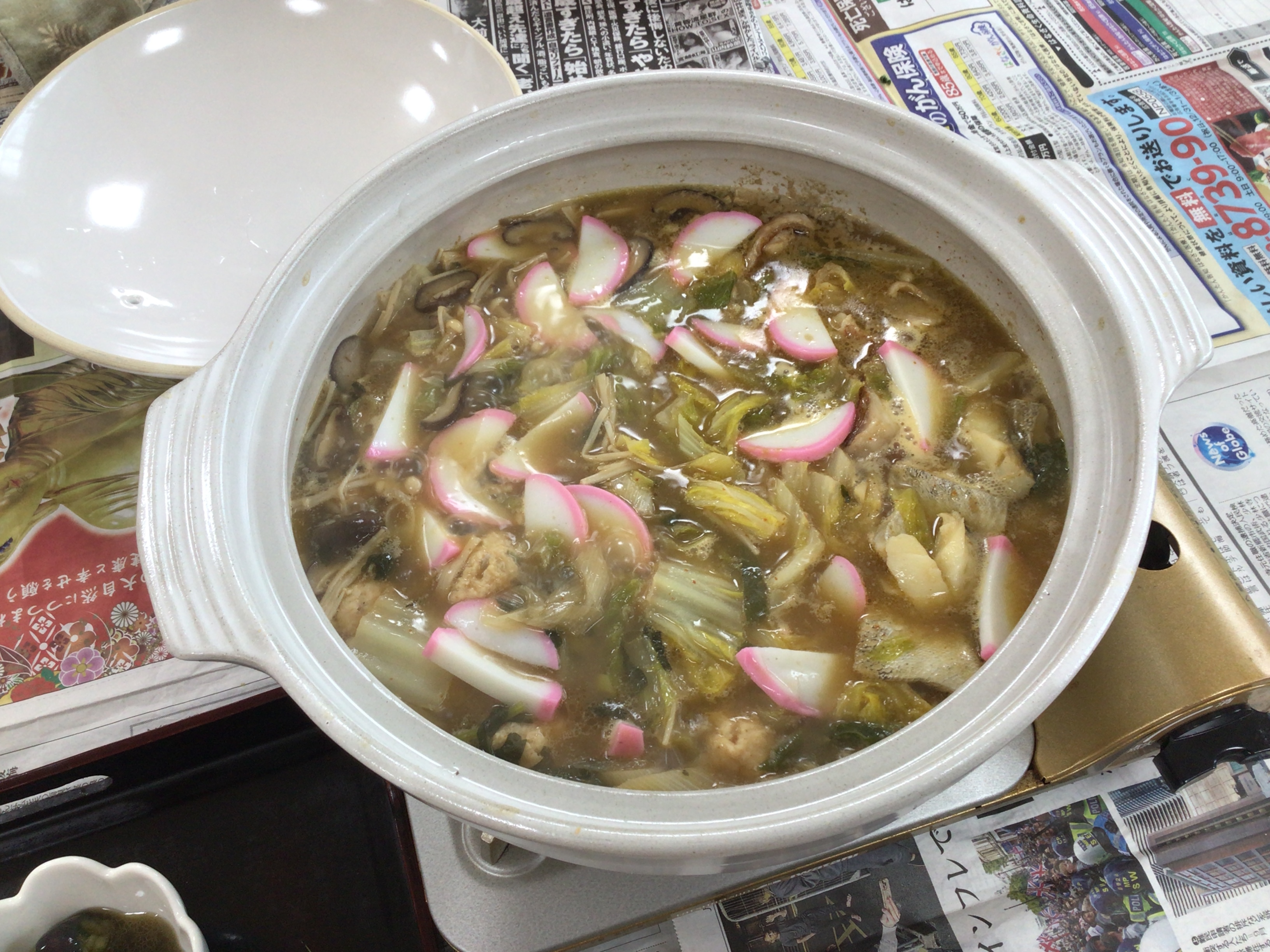 土鍋でぐつぐつ煮込むと、いい香りがフロア内に広がり、おいしそうな鍋が完成しました