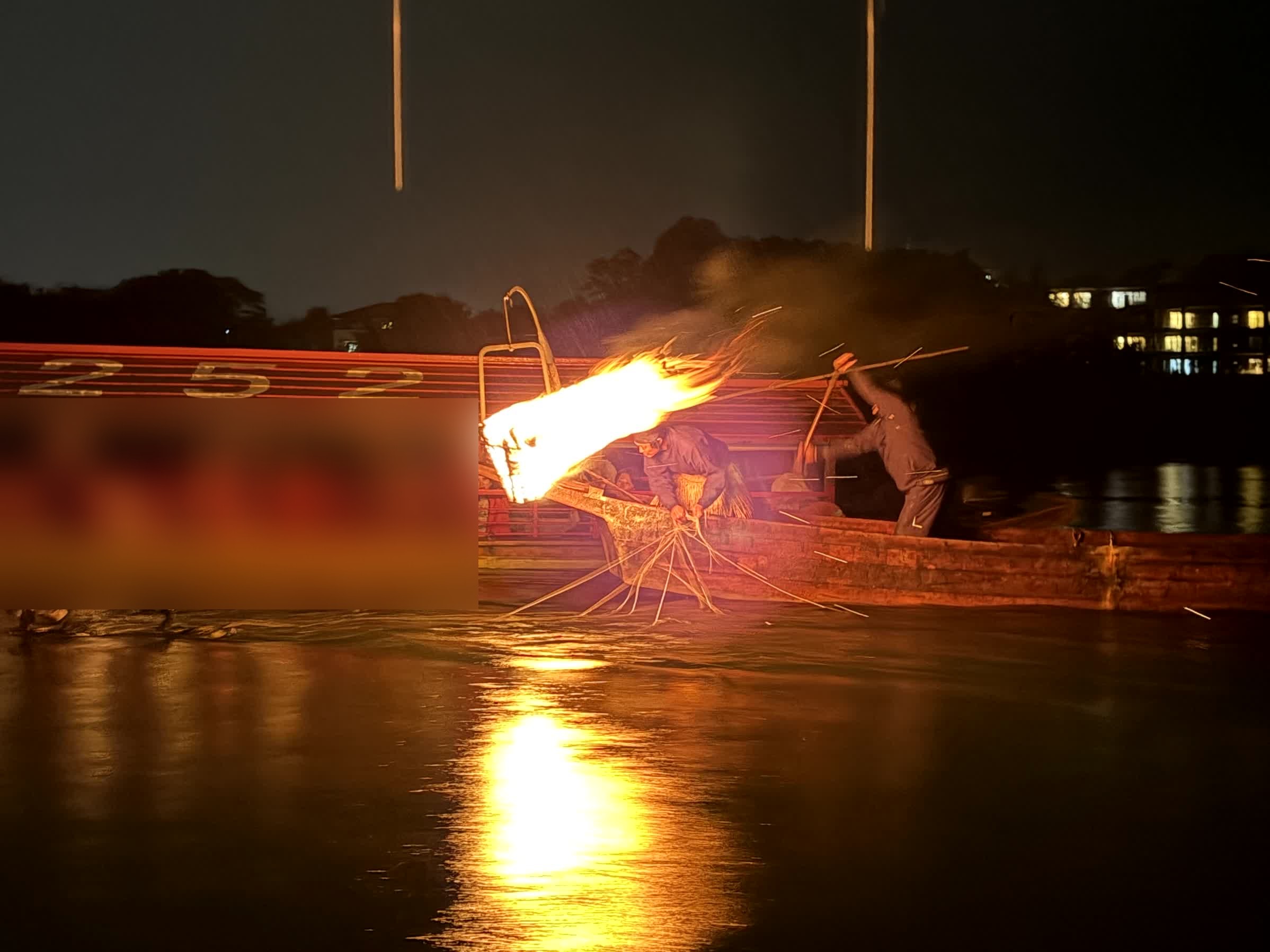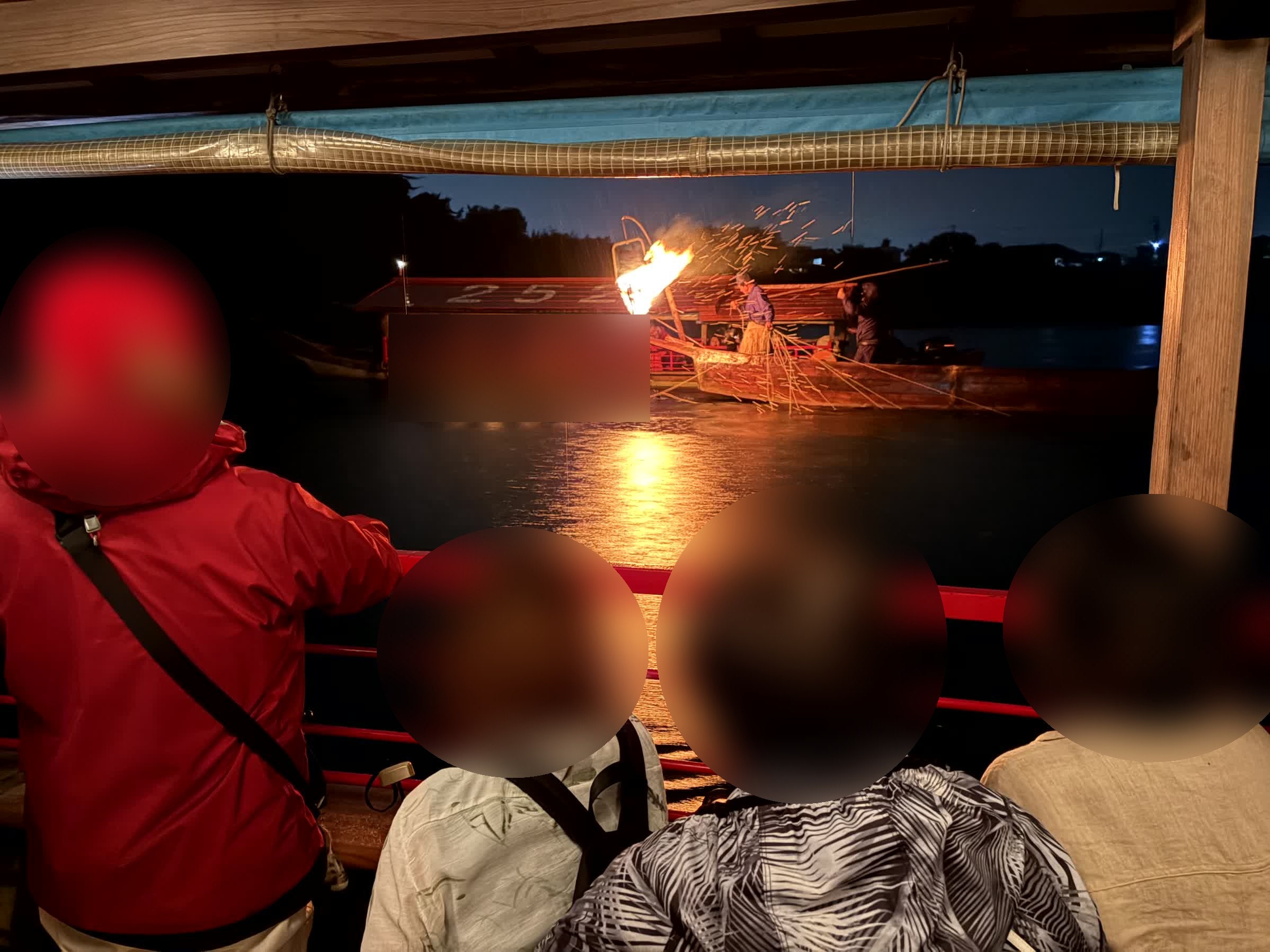 一休みして再出航し、鵜飼を見学します
