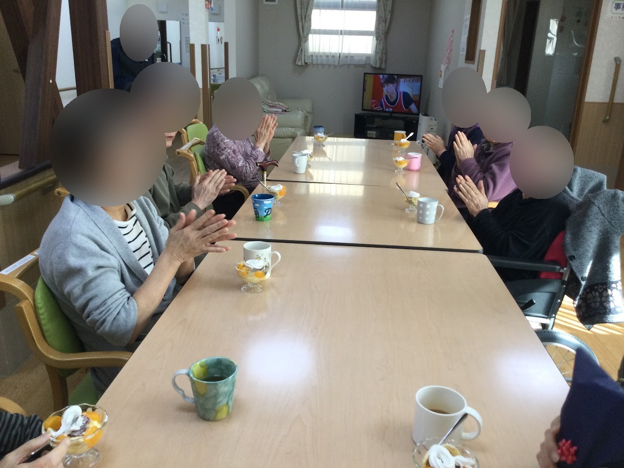 みなさんで歌を唄いお祝いしプリンアラモードを召しあがっていただきました